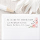 A beautiful return address label with your name and contact details framed by a blush pink watercolor floral arrangement.