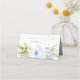 An elegant, modern floral wedding place card with a beautiful arrangement of watercolor flowers in tones of dusty blue and peach. We can customise the flower colours to match your wedding theme; just reach out to us at modernmatrimony(at)gmail(dot)com and allow a week for customisation.