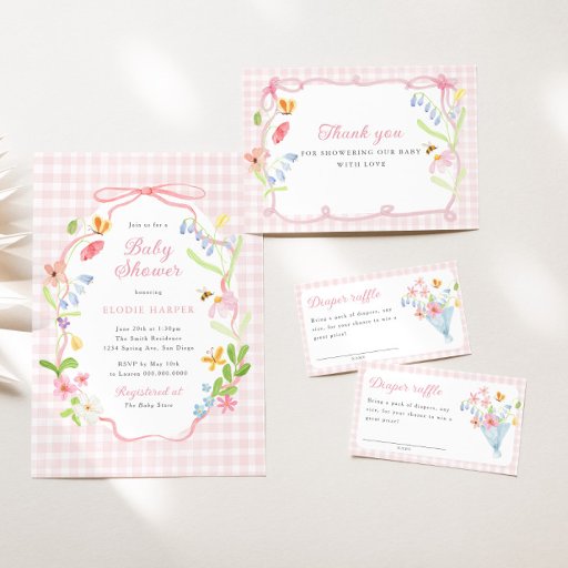 Spring Floral Pink Gingham Baby ShowerDesigned by MOONDAISY STUDIO