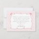 The card features a delightful soft pink gingham background, creating a serene and inviting canvas that evokes the timeless charm of a cozy country gathering. At the heart of the design is an elegant oval frame, adorned with graceful pink bows. This sophisticated detail adds a touch of femininity and whimsy, perfectly framing your baby shower details with style.
