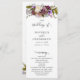 Introducing our Spring Floral Rustic Wedding Program, perfect for a spring bohemian celebration. Featuring realistic multi-coloured flowers and greenery, this program showcases a stunning blend of purple and pink blooms, light blue and white accents, and elegant script typography.