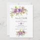 Purple and pink roses and peonies floral brunch and bubbly invitations with accents of coral, plum and sage green.