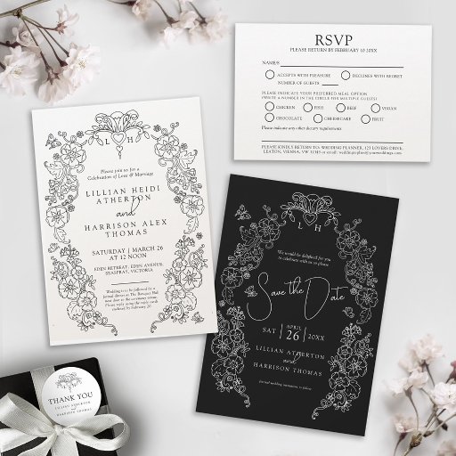 Fleur de lis flower butterflies art mono weddingDesigned by Sarah Trett