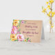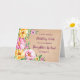 Pretty and thoughtful greeting card for your daughter in law's birthday with yellow, purple and pink spring flowers, rustic watercolor pattern and hand lettered style text.