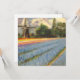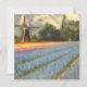 Card 2 of 3 Holland spring flowers field landscape with windmill painting triptych fine art panel 2 of 3 print invitation card with colourful blue hyacinths, tulips and yellow daffodils narcissus flowers and a Dutch windmill.