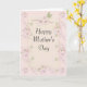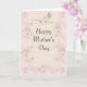 Mother's day card with a rosy peach background with pink and green flowers and foliage.. Victorian era look