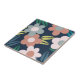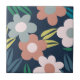 Abstract colourful blooming spring flowers and leaves decoration in pink, blue, green and yellow colours on navy blue background