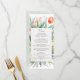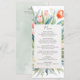 Experience the beauty of spring with this sprouting tulips Wedding Menu. Tulips bloom behind the card, framing the menu.