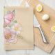 Pink white Spring flowers and a pink butterfly design on the kitchen towel.