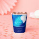 Wedding Paper Cups with Snow-white flower on bright blue clearance water background, azure teal watercolor painting, airy coloured spring or summer spotted floral background. White lily botanical elegant floral blossom Wedding Paper Cups. Spring Fondness Collection.