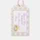 Pretty baby shower gift tag with an adorable fox and pink and purple flowers. Perfect for a spring or summer baby shower. The words can be changed to suit your own details or requirements