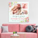 Custom baby girl nursery decor wrapped canvas personalised with your photos and text. This sweet girly design features a colourful pastel watercolor floral border surrounding a photo collage template with space for 3 square newborn photos. Add your baby's name monogram, birth stats or other custom text below. Use the design tools to choose any background colour, edit the text fonts and colours and add more photos to create a one of a kind keepsake wall art print.