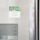 These boho floral retro marketing fridge magnet features a contemporary set of fonts in muted green against a soft ivory background, The design includes name, profession, website and contezt details.