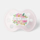 Custom monogrammed baby pacifier personalised with your baby girl's name. This sweet feminine design has a watercolor floral border in colourful shades of pink and green. Use the design tools to edit the text fonts and colours, choose any background colour and add photos to create a one of a kind baby shower gift or custom labelled pacifiers for daycare.