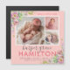 Affordable custom printed baby girl birth announcement magnetic cards. This sweet girly design has a pastel floral border with pink and purple flowers and greenery on a blush pink background. Personalise the design with baby's name, birthday and birth stats and add 3 newborn photos. Click Customise It to edit the text fonts and colours and add more photos to create unique one of a kind photo birth announcement magnets.