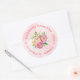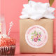 Custom circle return address stickers personalised with your family name and address around a bright pink and green watercolor floral bouquet. Use the design tools to change the background colour and fonts to further customise your own unique design.