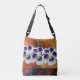 White and purple flowers, yellow, orange,red background. Abstract art collage design on Cross Body Bag