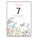 Pretty wedding table number sign with wildflowers in pink, and cute butterflies. Perfect for a spring or summer wedding. The words can be changed to suit your own details or requirements