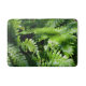 A close-up image of spring green ferns illuminated by dappled light through the forest’s canopy.