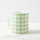 This coffee mug features light green and white squares in an old fashioned gingham checked pattern. Personalise this mug with your name or other custom text or enjoy it as is.