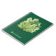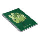 Spring notebook with a green maple leaves digital art featuring a decorative illustration of spring leaves over dark green speckled background and customizable text.