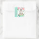 Spring Green Pink Floral Bunny Easter Eggs Square Sticker