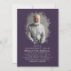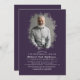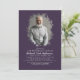 Dreamy funeral remembrance photo invitation featuring a picture of the person, and a celebration of life template with the editable backside background colour.