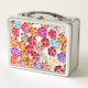 Spring Handmade sewn fabric Flowers Multicolor Metal Lunch Box