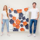 Spring handmade sewn fabric flowers orange blue fleece blanket