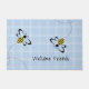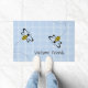 This welcome mat is perfect for spring decor. Designed by Aesthetic Journeys, it features adorable bee graphics on a blue striped background. Your own personalisation is also included. Use the template to change the message "customise it button" to change colours and fonts.
