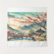 Spring in a Japanese Village Watercolor Landscape Tapestry