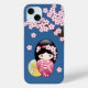 Spring Kokeshi Doll - Cute Japanese Geisha on Blue Case-Mate iPhone Case