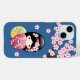 Spring Kokeshi Doll - Cute Japanese Geisha on Blue Case-Mate iPhone Case