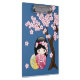 Spring Kokeshi Doll - Cute Japanese Geisha on Blue Clipboard