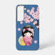 Spring Kokeshi Doll - Cute Japanese Geisha on Blue Samsung Galaxy S22 Case