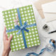 Spring wrapping paper in a soft and refreshing palette of light green and white, arranged in an evenly spaced, chequered grid for a timeless and cheerful appearance. Perfect for adding a touch of springtime charm to any gift, this wrapping paper exudes warmth and simplicity, making it ideal for birthdays, Easter, or any occasion that celebrates renewal and joy.