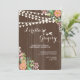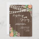 Strung lights and clusters of pink, blue and white flowers against a chocolate, wood-grain background make a lovely invitation perfect for an outdoor bridal shower, engagement party, anniversary celebration and more. (<a href='http://www.freepik.com/free-vector/floral-wedding-invitation-with-wood-texture_1048031.htm'>Designed by Freepik</a>). <br/><br/>The card is easy to customise with your wording, font, font colour and choice of six paper types.<br/><br/>Not exactly what you're looking for? All our products can be custom designed to meet your needs at no extra charge.<br/><br/>Simply contact us at askcottonlamb@gmail.com<br/><br/>Coordinating products available:
