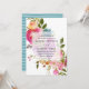 Elegant and modern floral wedding invitation features a background of delicate watercolor spring flowers in pink, blue and purple.