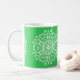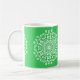 This white mandala sits on a bright spring green background. The colours are energising and light. Part of the Mola Mandala Collection.