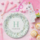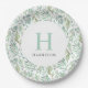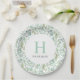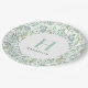 Custom monogrammed paper plates personalised with your family name or other text. This fresh spring design features a border of watercolor greenery around your monogram initial and name. Use the design tools to choose any fonts and colours you like or upload your own photos to further customise the design.