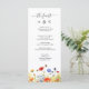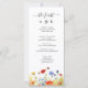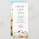 Infuse your wedding reception with the charm of nature using our Spring Meadow Wildflowers Customisable Menu. This enchanting menu features a breathtaking depiction of a spring meadow adorned with a vibrant array of wildflowers. The watercolor illustration beautifully captures the essence of nature's beauty, providing a picturesque backdrop for your culinary details. The dominant colour palette includes stunning yellow flowers that radiate warmth and joy, seamlessly transitioning into a cascade of red-orange blooms, and finally, delicate blue flowers that add a touch of serenity. To personalise this menu further, click the "customise further" link and utilise our design tool to adjust this template according to your preferences.