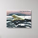 A polar bear (Ursus maritimus) rests on rocks during the spring melt of the ice pack. Add your own text.