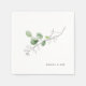 Watercolor Spring foliage & pencil foliage wedding cocktail napkin. Simple. Modern. White. Custom.