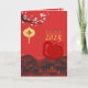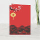 Beautiful Chinese illustration of a city by spring night with cherry blossoms, lantern (with Snake ideogram), "Happy Chinese New Year" in Chinese and English and custom 2025 + Snake in paper cut-out syle (image printed). Design on vertical greeting card. Matching holiday postcard and more soon... Perfect for Chinese New Year of The Snake 2025.