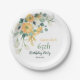 Elegant floral birthday party paper plates featuring watercolor orange and white anemone flowers with mimosa greenery arrangement. All texts are editable. Matching items available in store!