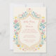 Baby shower invitation with illustrated shield shape surrounded by hearts and tulips. Choose a background colour; change the die cut and paper type as an upgrade.