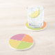 Colourful coaster using pastel lemon, raspberry pink, lime green and orange in an argyle pattern.