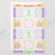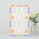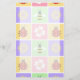 Pastel pink, yellow, purple, and green squares are adorned with ladybugs, dogwood blossoms, daisies, and honeybee and then bordered by tight white stitching to create a fun and sweet spring patch-like pattern.