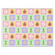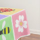 Pastel pink, yellow, purple, and green squares are adorned with ladybugs, dogwood blossoms, daisies, and honeybee and then bordered by tight white stitching to create a fun and sweet spring patch-like pattern.