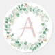 Spring peony wreath with letter customisable classic round sticker